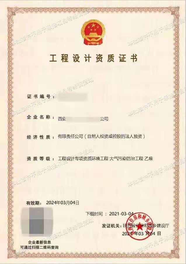 (三)环境工程设计专项资质设甲、乙两个级别。