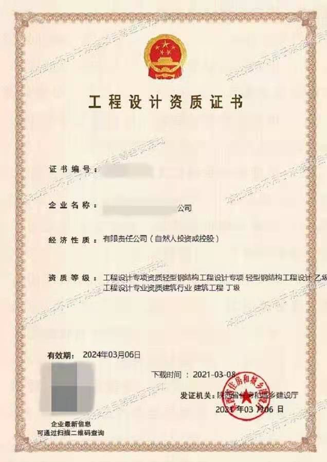 (二)轻型钢结构工程设计专项资质设甲、乙两个级别。
